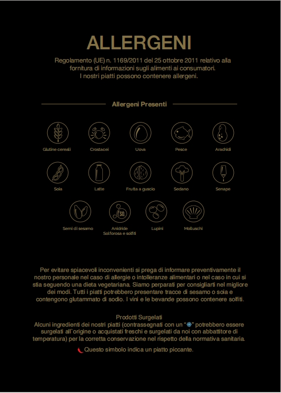 Glutine*Crostacei*Uova*Pesci*Latte*Soia
